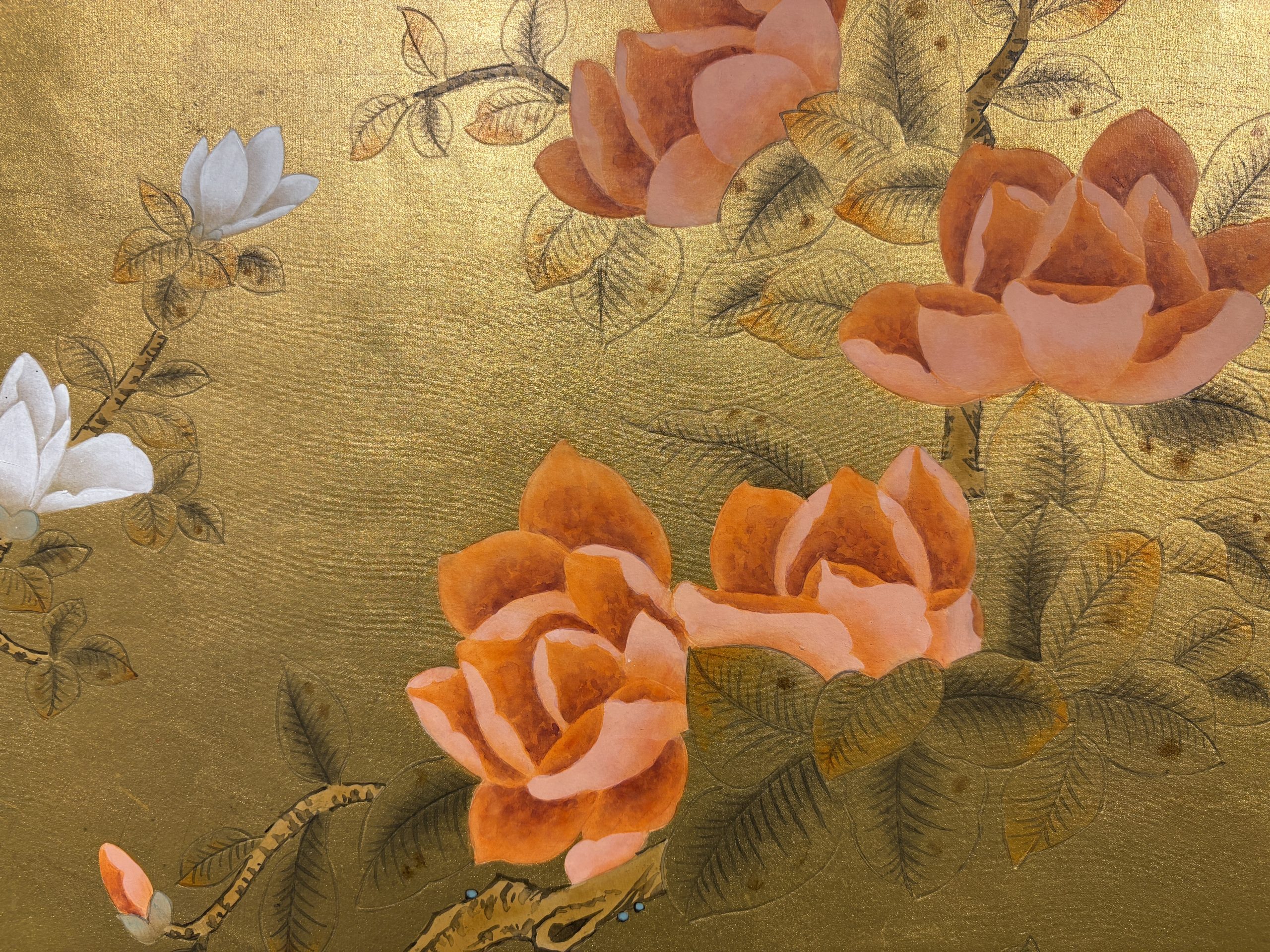 The current size is suitable both as a sample to appreciate the texture of gold leaf or as a standalone artwork that can be professionally framed. With its distinctive glow and delicate brushwork, this piece showcases Silkaroma’s craftsmanship and the luxurious character of gold leaf.