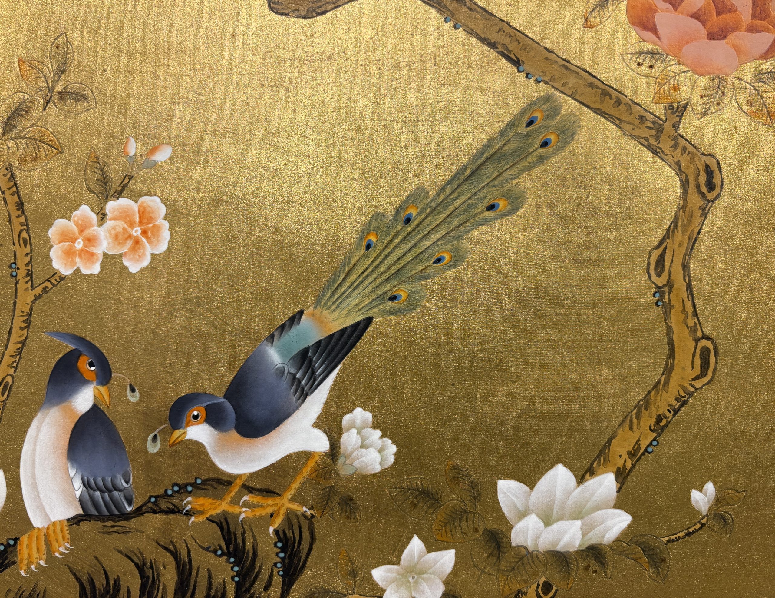 Floral and Bird on Gold Leaf