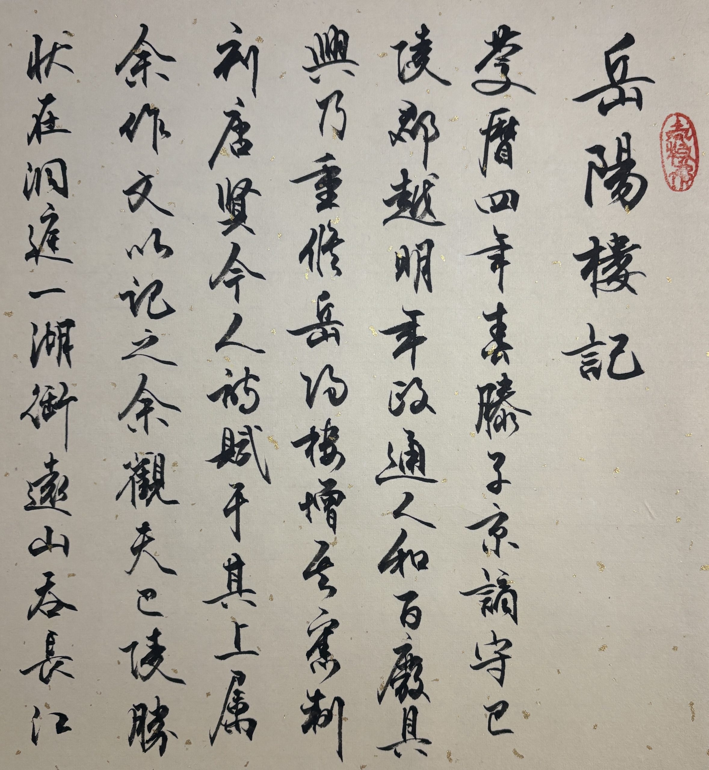 Description: It was written by Fan Zhongyan (AD 989–1052), a renowned scholar of the Northern Song Dynasty. It is one of the essential texts studied in Chinese high school (year8) curriculum, using the view from Yueyang Tower as a metaphor to express concern for the world and compassion for the people. Its famous line —”Be the first to worry for the affairs of the state, and the last to enjoy its pleasures”—has been recited for generations.